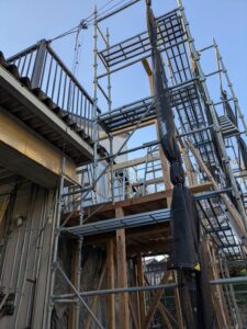 今回は高所部分のバルコニーとのクリアランスを調整し、しっかり補強を入れて安全に作業できる状態に仕上げています。