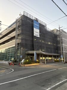 今回は静岡市内にある病院に設置した外壁改修用の足場になります!