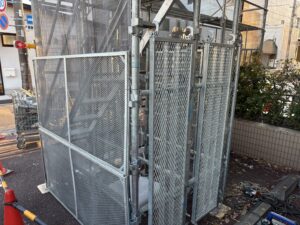 病院や小学校などの公共施設では、足場に入ってしまう方がいないよう万が一の場合に備え、写真の様な侵入防止措置を講じております!
