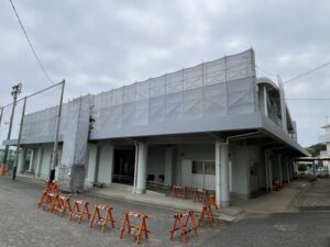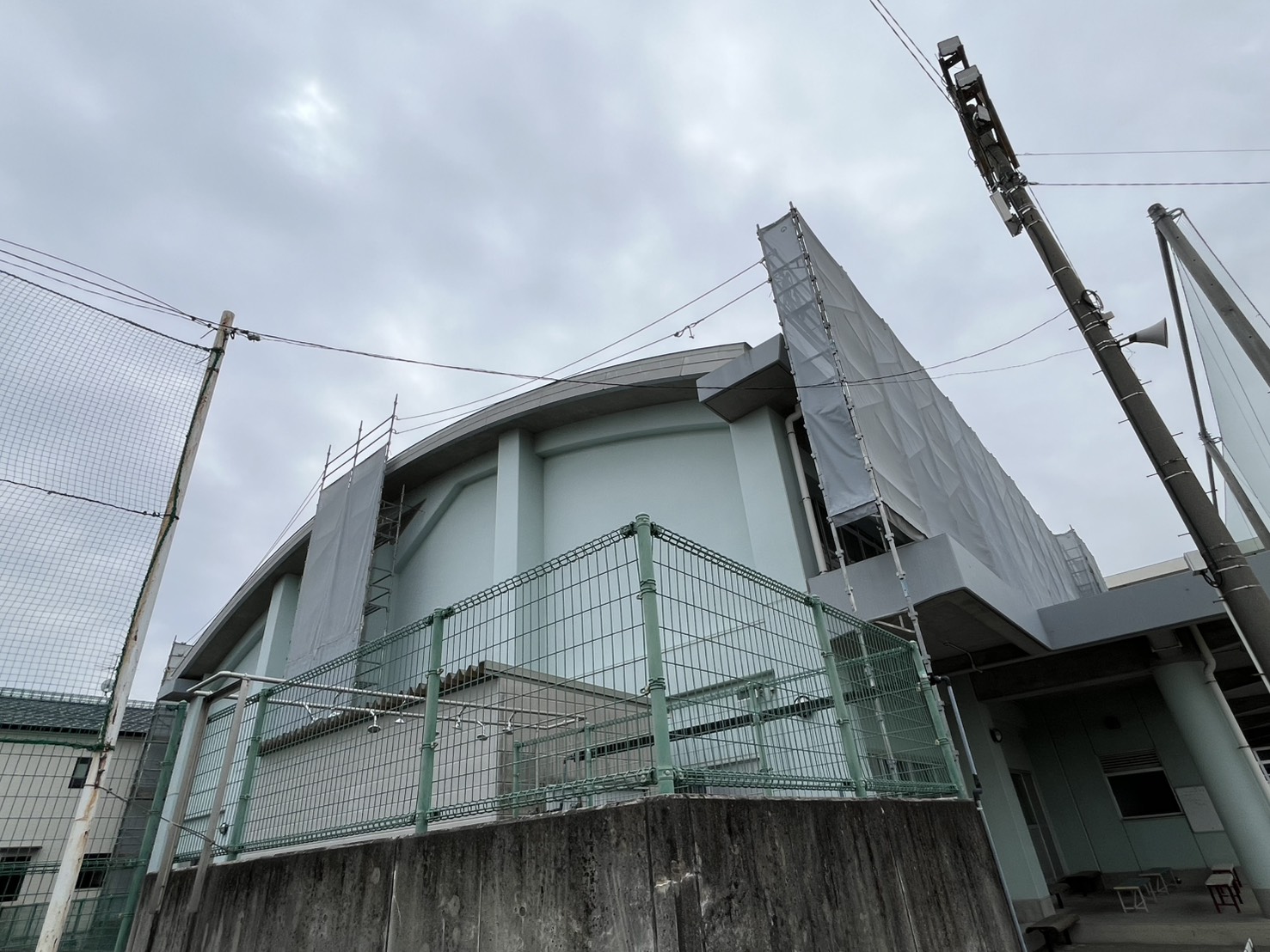 今回は静岡市内にある小学校の体育館断熱工事の為に設置した屋根、窓ガラス改修用の足場になります!